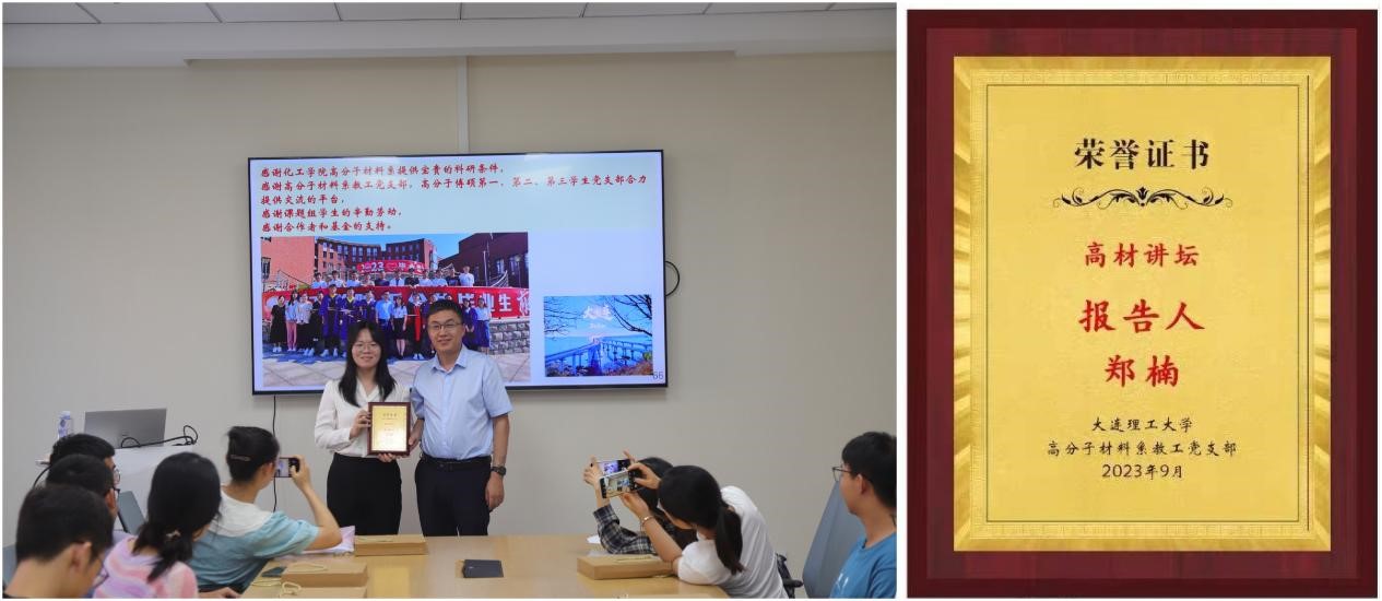 郑楠老师的讲解深入浅出、生动有趣,帮助同学们开拓了新的科研思路。分享结束后,郑楠老师还细致入微地解答了老师、同学们的疑惑,大家受益匪浅。活动的最后,支部书记乔文强教授为主讲嘉宾郑楠老师颁发“高材讲坛”荣誉证书,以鼓励她在今后的科研中做出更加突出的创新成果,为解决国家“卡脖子”问题作出应有的贡献。