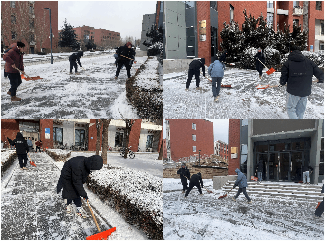 活动于当天上午启动,党支部全体成员迅速响应,积极投入到扫雪行动中。他们手持铁锹、扫帚等工具,分工协作,对教学楼、实验楼周边的积雪进行了全面清理。在寒冷的冬日里,大家顶着严寒、挥汗如雨,用行动书写了团结和奉献的篇章。