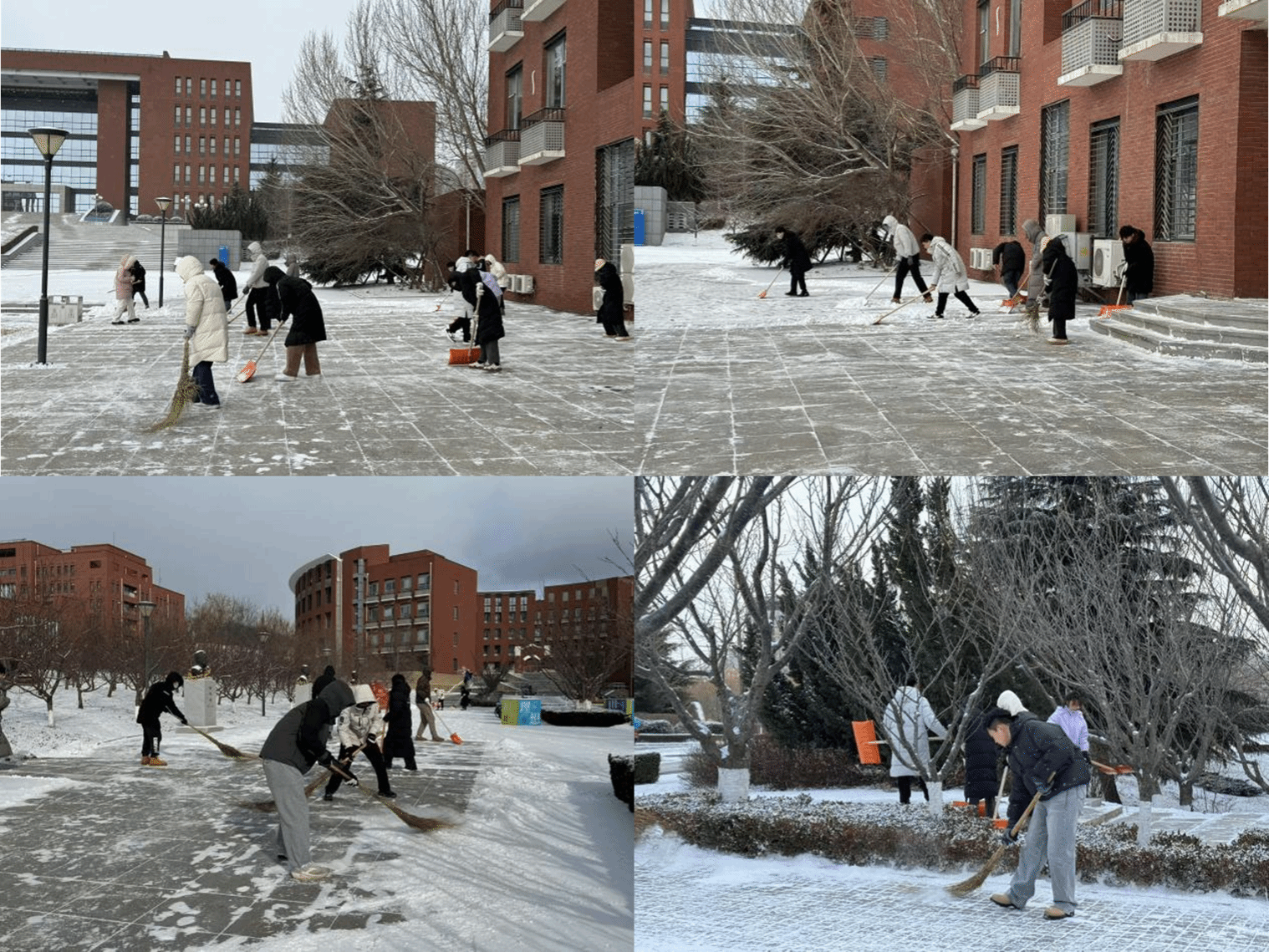 1月9日,大连迎来入冬以来首场降雪,这场雪给校园带来了冬日“韵味”,但也给老师、同学们的出行带来诸多不便,为有效防范雨雪冰冻天气带来的道路交通安全隐患,确保校内道路安全通畅,太阳成集团tyc122ccvip材料化工博硕第一员工党支部、电化学博硕师生纵向党支部积极响应号召,联合开展“党旗映雪志愿红,扫雪除冰保畅通”——冬季校园扫雪除冰志愿服务活动。