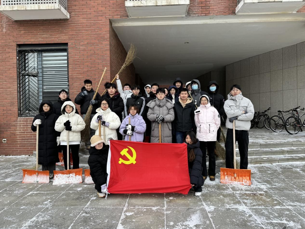 本着“下雪为令、雪停即清”的原则,1月9日上午10:00党支部成员迅速集结进行扫雪除冰行动。在寒冷的环境中,各位同志团结协作,手持铁锹、扫帚等工具有序清理化工综合楼楼前及周围道路积雪,以实际行动彰显新时代青年党员的志愿服务精神,展现了研究生党支部的良好精神风貌,为基层党支部“一融双高”建设添砖加瓦。