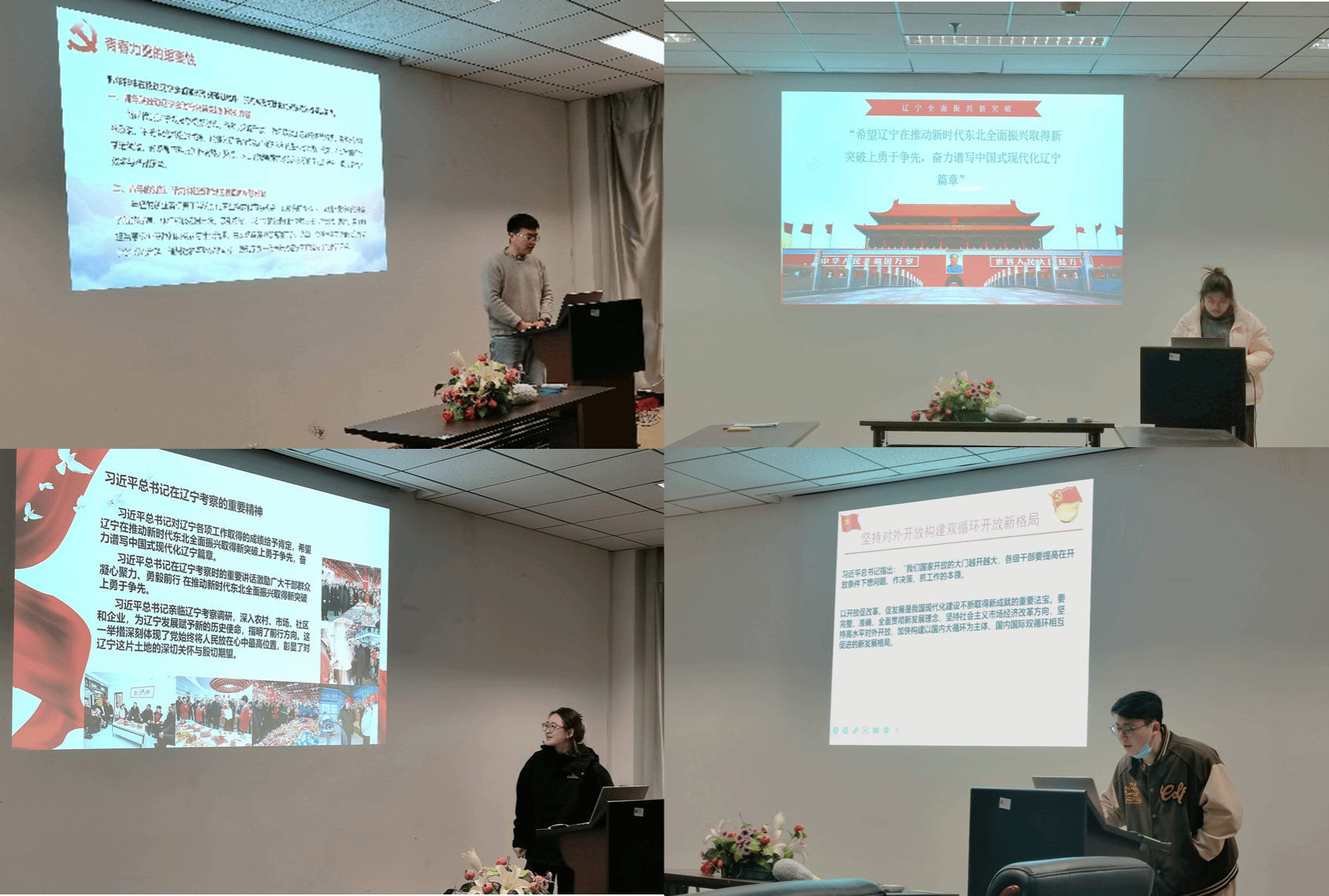 分子水平太阳能转换博硕第二员工党支部入党积极分子宁洪侠同志围绕“习近平总书记在辽宁考察时的重要讲话和新时代东北振兴中青年人的使命担当”主题展开汇报。她号召与会同志发扬新时代科学家精神,积极学习科学文化知识,不断提升科研能力,积极投身东北全面振兴伟大实践。