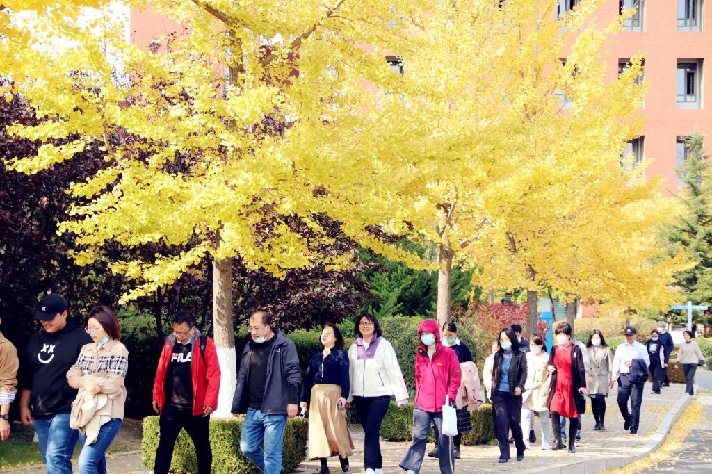 随后,伴随着出发口令,公司教职工精神饱满、步伐坚定,一边欣赏沿途校园秋景,一边与同事攀谈,感受着徒步健身带来的愉悦氛围。