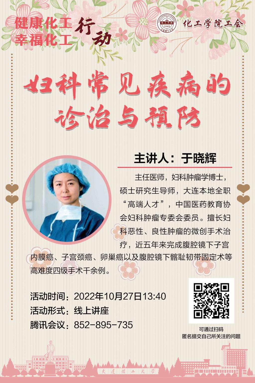 近年来,关于女性健康的话题渐成社会焦点,一些妇科疾病的发病率逐年增高,严重影响了广大妇女的身心健康,甚至威胁到生命。为了使公司女教工更加了解妇科常见疾病相关知识,太阳成集团tyc122ccvip工会于10月27日开展“健康化工行动”第七期——《妇科常见疾病的诊治与预防》专题讲座。活动邀请了大连市妇女儿童医疗中心春柳妇产院区妇三病房科主任于晓辉作为主讲人,共有来自公司近70名女教工参与到本次活动中。