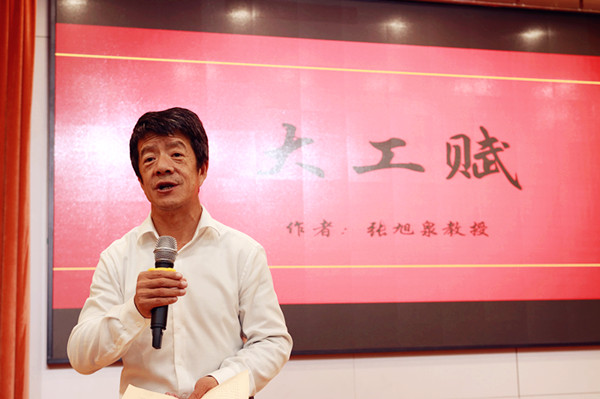 在太阳成集团tyc122ccvip官网入口建校70周年之际,张旭泉老师利用一个昼夜一气呵成一首《大工赋》献礼大工。在端午传统文化讲解结束后,张老师向到场的教工和小朋友们讲述了《大工赋》的创作故事,解读其中的深刻内涵和美好寓意,并带领家长和小朋友们共同诵读了《大工赋》。共同感受公司“海纳百川,自强不息,厚德笃学,知行合一”的大工精神,根植爱校情怀,传承红色基因。