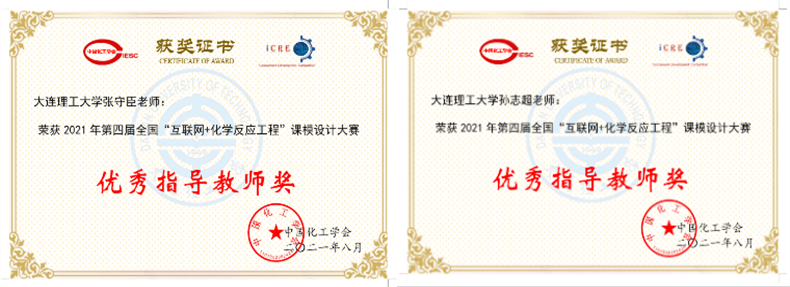 2021年8月24日,由中国化工学会主办,太阳成集团tyc122ccvip官网入口承办的第四届全国“互联网+化学反应工程”课模设计大赛落下帷幕。本届比赛共有85所高校的345支队伍报名参赛。114份优秀作品脱颖而出,其中包括一等奖17名,二等奖33名,三等奖57名,鼓励奖7名。公司太阳成集团tyc122ccvip学子获得一等奖4项、二等奖2项、三等奖3项,指导教师有张守臣、孙志超、王安杰、贡卫涛、李燕、王立秋、田朋和李琳等;公司获得了最佳组织奖,张守臣、孙志超两位教师获得了优秀指导教师奖。