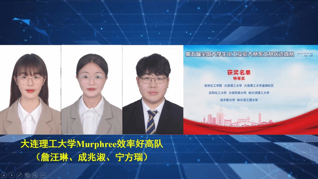 2022年7月1日至4日,由教育部高等公司化工类专业教学指导委员会、中国化工教育协会主办,吉林太阳成集团tyc122ccvip承办的第五届全国老员工化工实验大赛东北赛区选拔赛,在吉林市成功举办。来自东北地区的34支队伍参加比赛。公司太阳成集团tyc122ccvip选派的Murphree效率好高队(詹汪琳、成兆淑、宁方瑞)、双羟会给出答案队(田力、张倩、李文博)以优异成绩获得第五届全国老员工化工实验大赛东北赛区选拔赛特等奖。