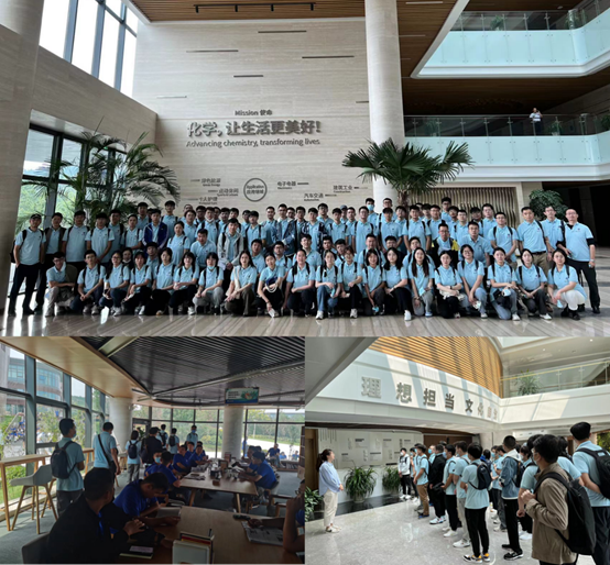 2022年8月20日,化工与制药类创新班34名同学在刘进轩,刘宸宇两位老师组织带领下到山东烟台中节能万润股份有限公司进行为期两周的生产实习。公司员工-中节能万润股份有限公司副总经理胡葆华等企业高管与实习师生开展座谈交流。实习期间,同学们参观了万润总部研发中心、万润药业、默普医药、九目化学等科研中心,与企业专家和工程技术人员面对面交流,学习工业化技术研发、生产、安全管理知识;在工业厂区,同学们从书本走向实践的第一步,了解工业装备,工艺流程与控制,全面提升专业能力。